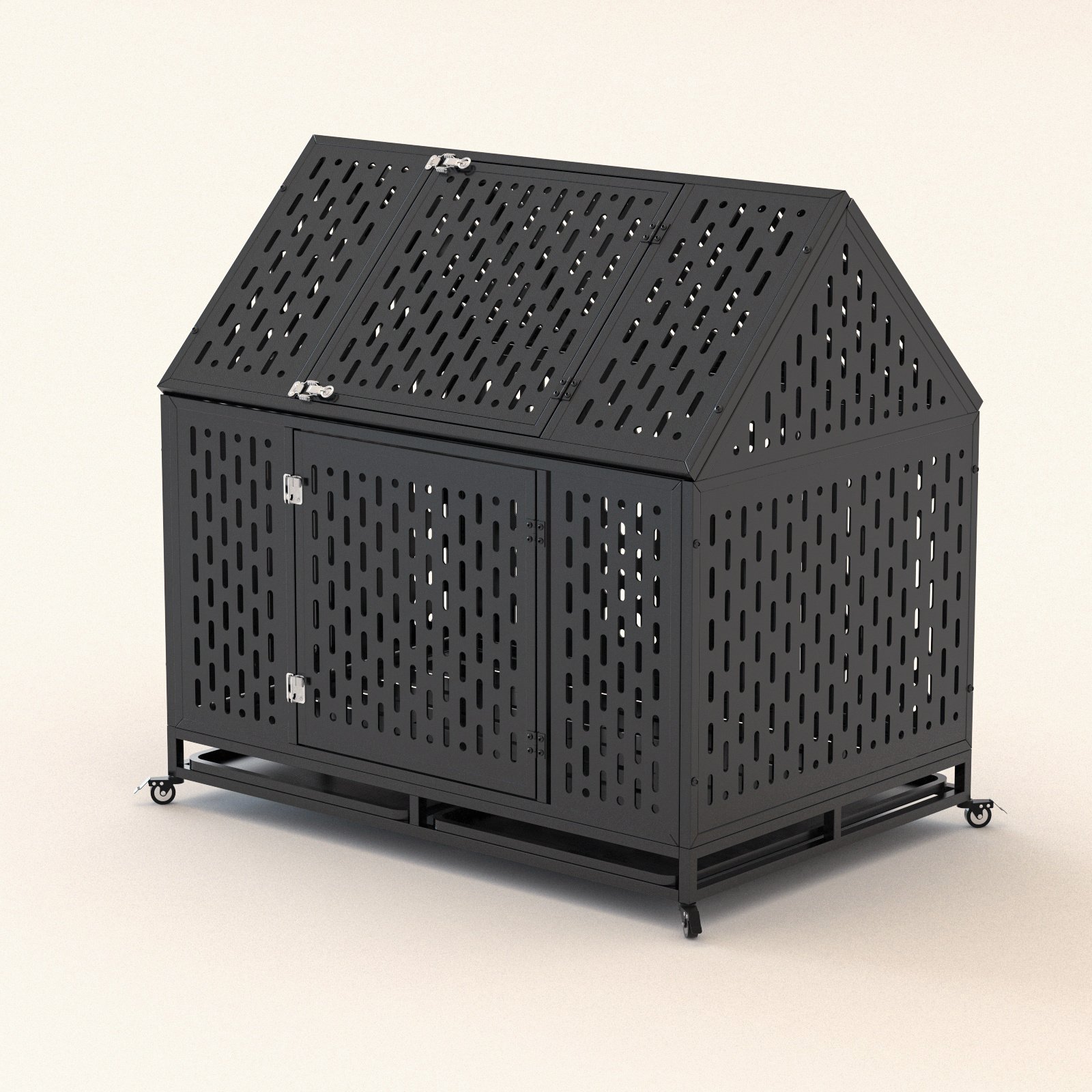 • Pointed Roof & Top Door: The pointed roof design of this large indoor dog kennel provides extra height and expands the living area, making it suitable for large dogs. The top door allows you to interact with or check on or feed your pet easily, which is good for high-anxiety dogs.